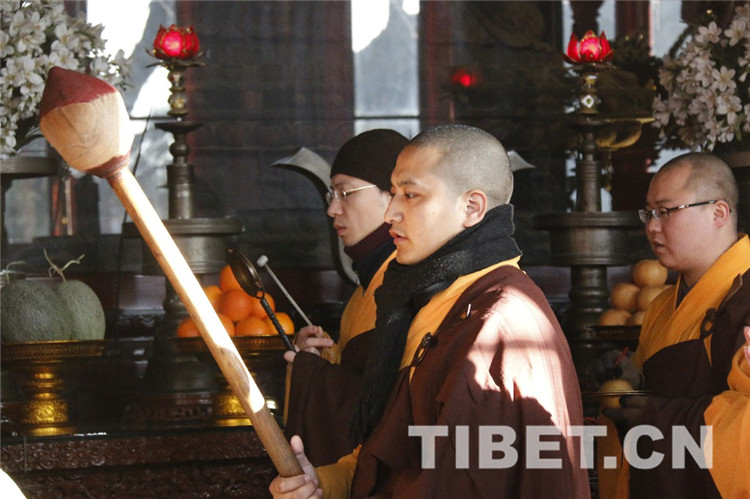 1月28日,雍和宮舉行法會,紀念十世班禪大師圓寂30周年。圖為上午8時許,約80位教職人員、僧人誦禱經(jīng)文,有序進入法輪殿。[詳細] -