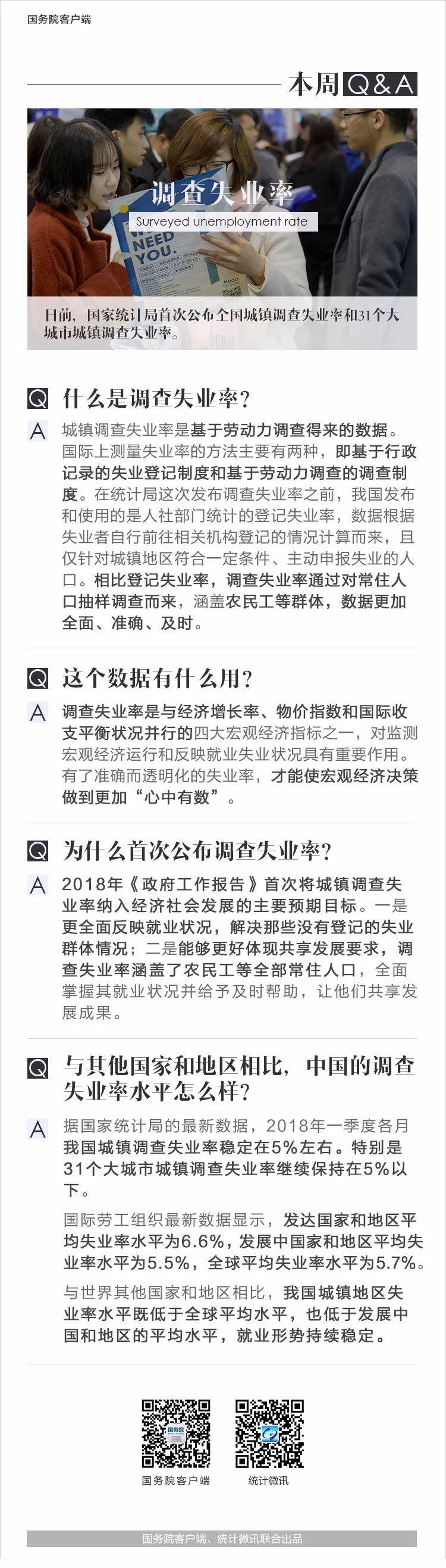 4月17日,城鎮(zhèn)調(diào)查失業(yè)率首次對(duì)外發(fā)布。這個(gè)數(shù)據(jù)有啥用?跟你我有啥關(guān)系?國(guó)務(wù)院客戶端聯(lián)合統(tǒng)計(jì)微訊共同推出本周Q&A,一張圖告訴你答案!