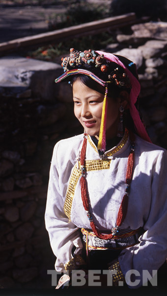 曾經(jīng)在雜志上看過一篇關于丹巴美人谷的報道,上面有一張三、四十人的丹巴女子盛裝大合影,眼睛逐一地在她們臉上掃過——簡直有些傻了:個個烏發(fā)白膚高鼻小口,身材高挑勻稱柔軟,如出水芙蓉般清麗俊秀…… 這等美麗不是百里挑一、也是五十里挑一的,合影中幾乎個個女子都有這般天生麗質(zhì),反反復復看了一遍又一遍,引來心中無限憧憬、無限神往。