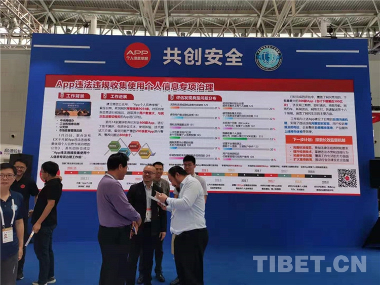 圖為2019年網(wǎng)絡(luò)安全博覽會上App個人信息保護展臺“共創(chuàng)安全”展板