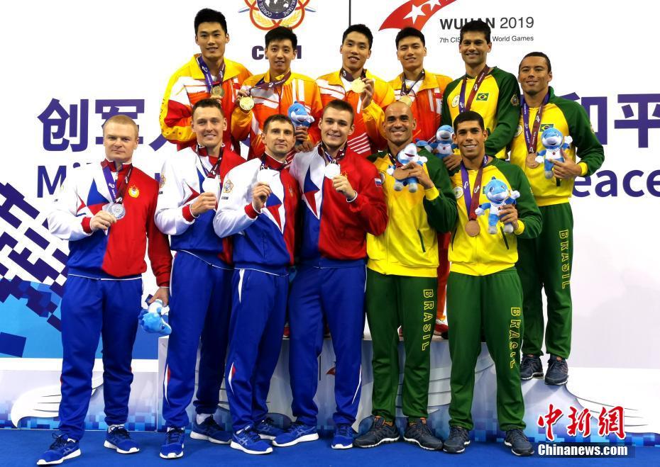 武漢軍運(yùn)會 中國隊(duì)獲男子4x50米混合救生接力賽冠軍