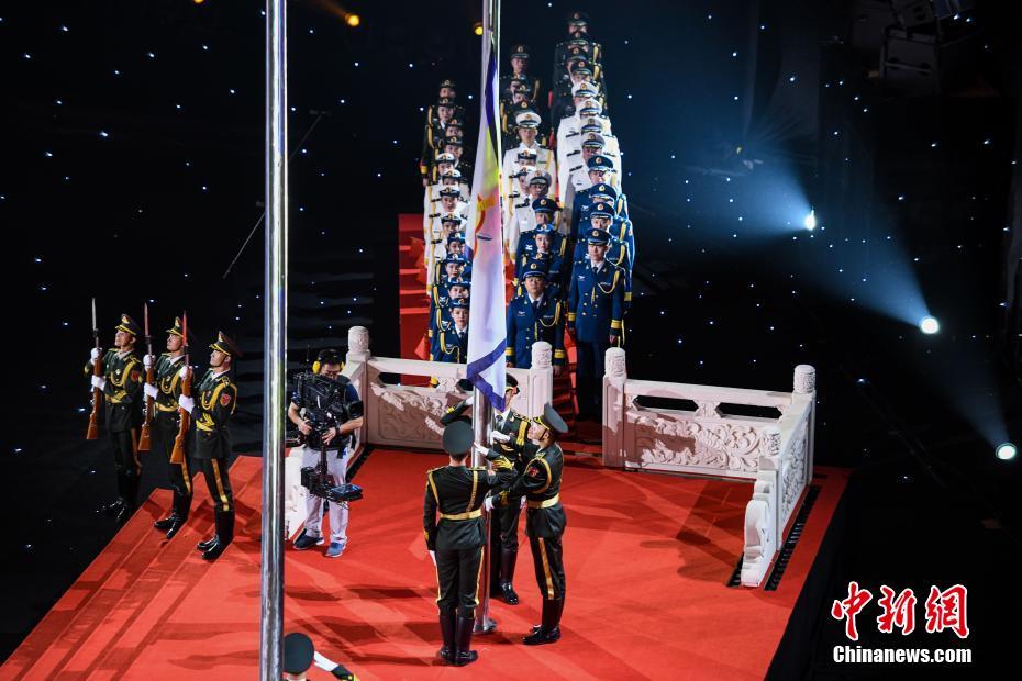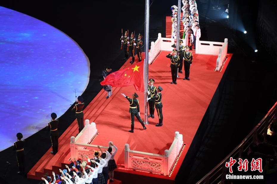 圖為閉幕式現(xiàn)場(chǎng)升起中華人民共和國(guó)國(guó)旗。 中新社記者 張暢 攝