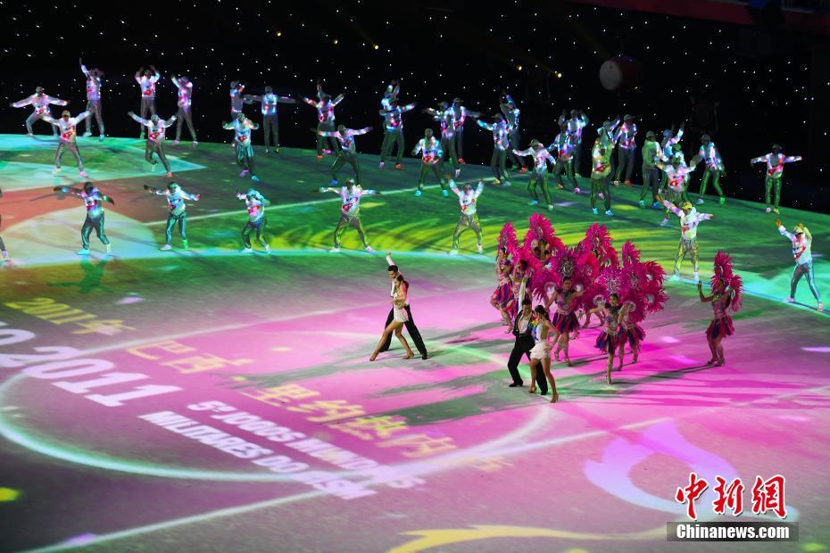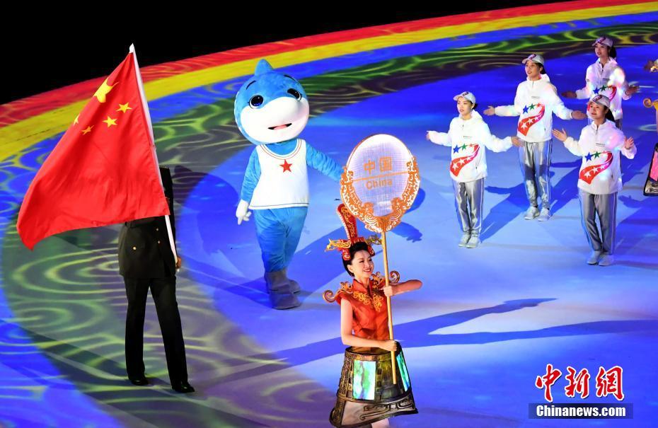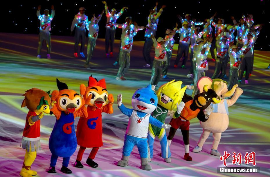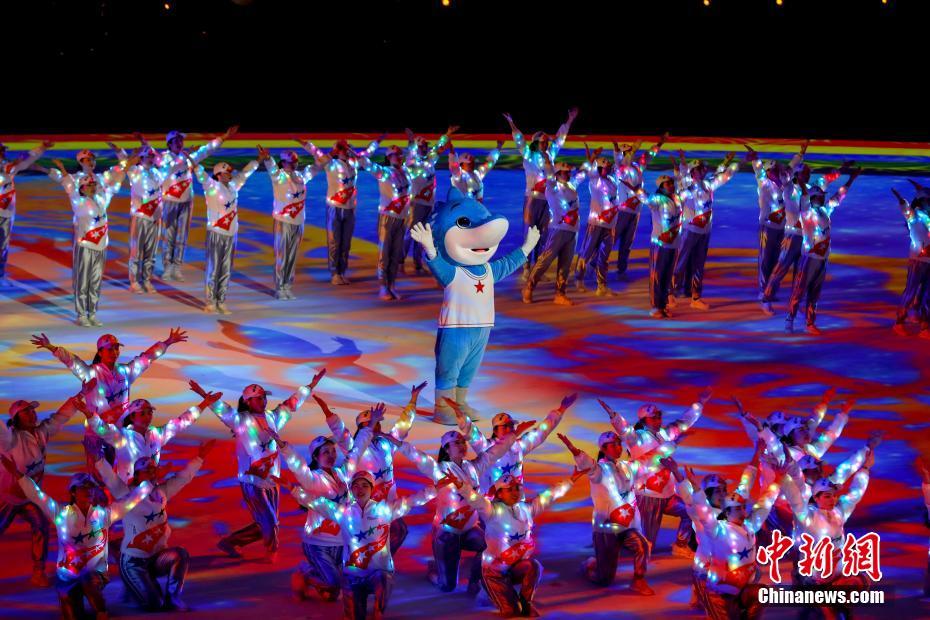 圖為各屆軍運(yùn)會(huì)的吉祥物亮相閉幕式。 中新社記者 張暢 攝