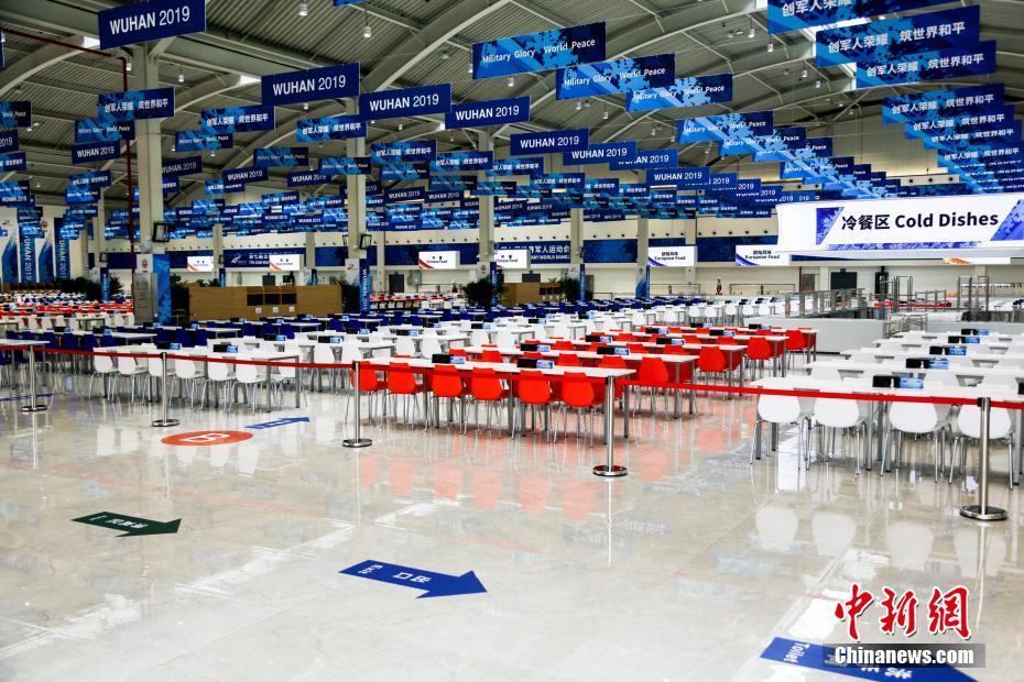 圖為武漢軍運(yùn)村運(yùn)動(dòng)員餐廳,可同時(shí)容納4500人就餐。中新社記者 張暢 攝