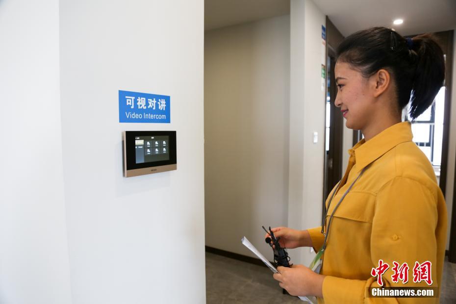 圖為武漢軍運(yùn)村公寓內(nèi)的可視對(duì)講系統(tǒng)。中新社記者 張暢 攝