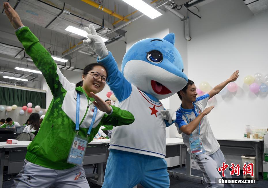10月24日,幾位在第七屆世界軍人運(yùn)動(dòng)會(huì)舉辦期間迎來(lái)生日的志愿者“小水杉”在主媒體中心內(nèi)的“志愿者之家”過(guò)集體生日。圖為兩名志愿者帶著軍運(yùn)會(huì)吉祥物“兵兵”的手套合影。中新社記者 侯宇 攝