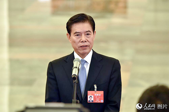 商務(wù)部部長(zhǎng)鐘山回答記者提問(wèn)。人民網(wǎng)記者 翁奇羽 攝