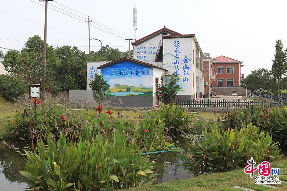 在長沙市望城區(qū)靖港鎮(zhèn)復(fù)勝村一戶民居的墻上,“綠水青山就是金山銀山”的標語在清澈的溝渠邊格外顯眼。中國網(wǎng)記者 倫曉璇 攝