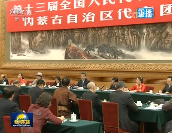 圖為3月5日,習(xí)近平參加內(nèi)蒙古代表團審議。圖片來源:新聞聯(lián)播截圖