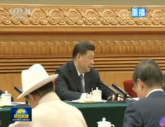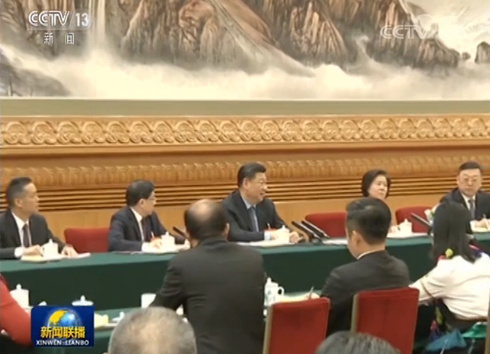 圖為3月7日,習(xí)近平參加甘肅代表團審議。圖片來源:新聞聯(lián)播截圖