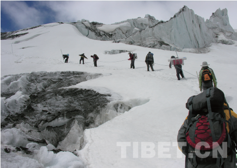 藏東南密集的海洋性冰川成為青藏高原研究所重點(diǎn)監(jiān)測地區(qū)。圖為楊威博士帶隊(duì)前往帕隆4號(hào)冰川