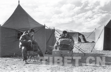 無(wú)人區(qū)13號(hào)營(yíng)地,發(fā)電報(bào)與北京聯(lián)系 李明森/攝影