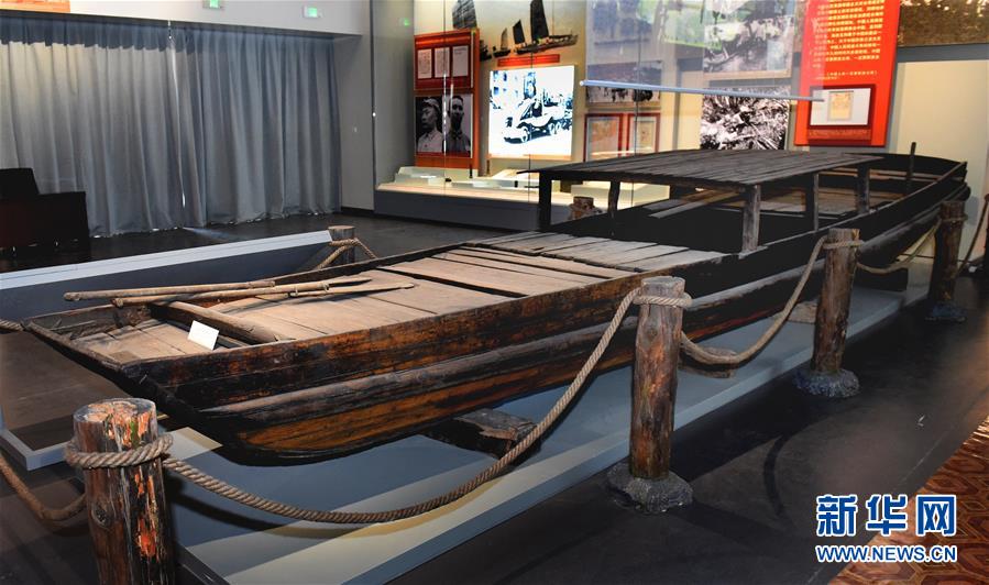 這是香山革命紀(jì)念館中,《為新中國(guó)奠基——中共中央在香山》主題展覽展出的人民解放軍渡江戰(zhàn)役使用的同型木船(9月7日攝)。新華社發(fā)(任超 攝)