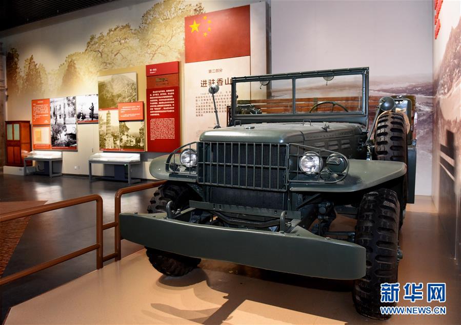 這是香山革命紀(jì)念館中,《為新中國(guó)奠基——中共中央在香山》主題展覽展出的中共中央遷駐香山時(shí)使用的同型吉普車(9月7日攝)。新華社發(fā)(任超 攝)