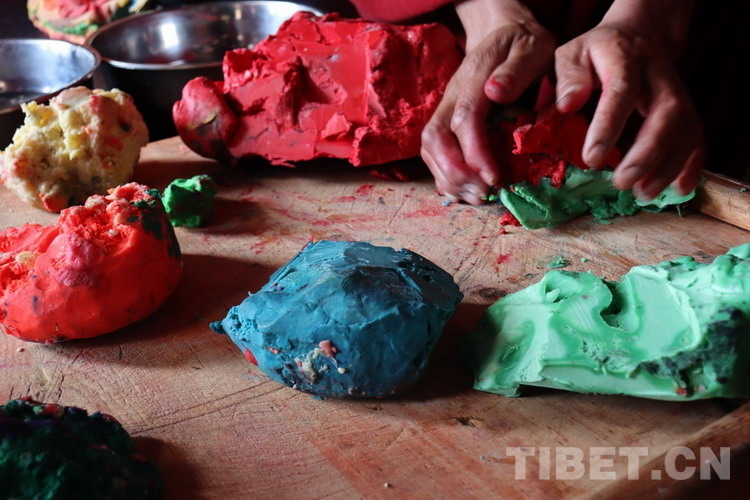 圖為經(jīng)過顏料加工上色用來制作酥油花的酥油 攝影:澤仁措姆