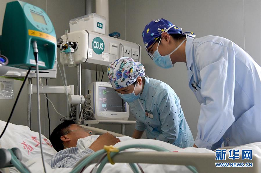 劉光耀(右一)和喬冰(右二)在河南省直第三人民醫(yī)院急重癥醫(yī)學(xué)中心病房內(nèi)詢問病人情況(4月26日攝)。劉光耀和喬冰是河南省直第三人民醫(yī)院急重癥醫(yī)學(xué)中心的護(hù)士,也是一對(duì)“90后”情侶。新冠肺炎疫情發(fā)生后,他們一起報(bào)名申請(qǐng)到武漢一線支援。新華社記者李安攝