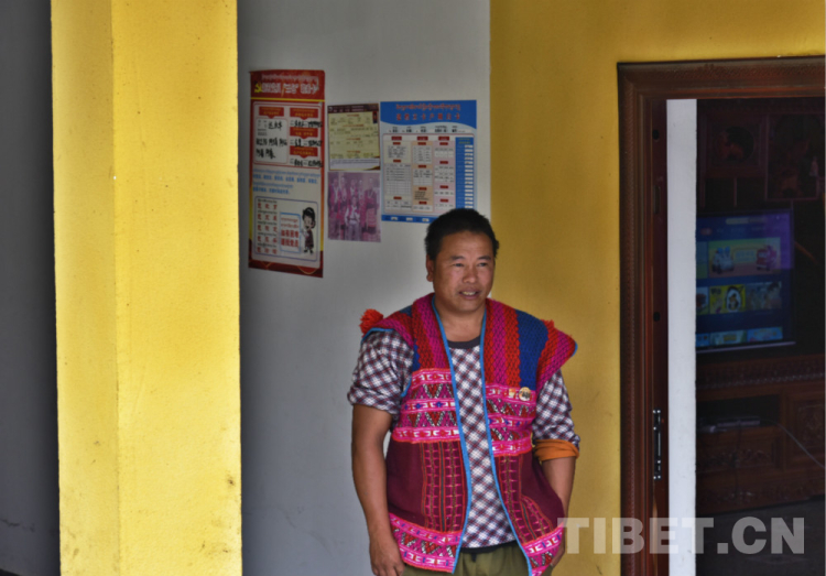 圖為西藏自治區(qū)林芝市察隅縣下察隅鎮(zhèn)新村村委會主任達(dá)永華在自家門口 攝影:王媛媛