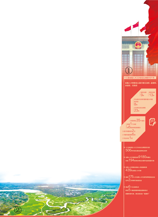 十三屆全國(guó)人大三次會(huì)議以來(lái)的10個(gè)月,全國(guó)人大常委會(huì)制定法律9件,修改法律13件,作出有關(guān)法律問(wèn)題和重大問(wèn)題的決定8件,正在審議的法律案23件。[詳細(xì)] -