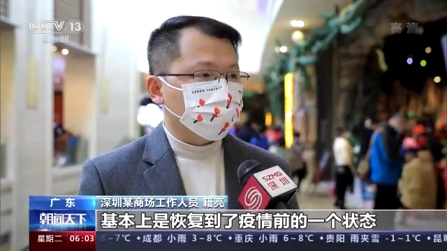廣東深圳某商場工作人員 籍亮:每日(商場)平均營業(yè)額已經(jīng)接近500萬的水平,基本上恢復(fù)到了疫情前的狀態(tài)。