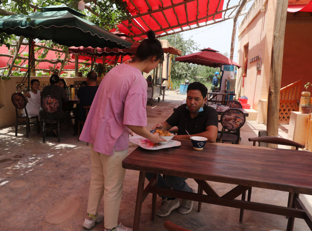 炎炎夏日,在沙漠綠洲小村農(nóng)家院葡萄架下,一邊享用油亮飄香的抓飯和熱騰騰的烤肉,再來一杯涼爽的卡瓦斯(新疆本地特色飲料),實(shí)在愜意!近年來,新疆和田地區(qū)一些縣市積極打造具有濃厚地域特色的“網(wǎng)紅村”,吸引更多游客走進(jìn)和田,助力當(dāng)?shù)刈呱蠈?shí)現(xiàn)鄉(xiāng)村振興的新路。
