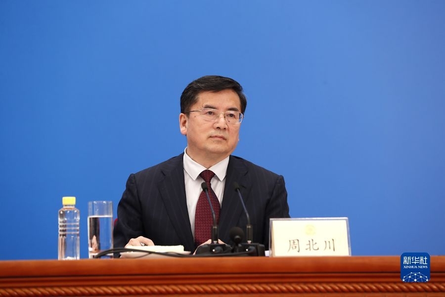 3月3日,全國政協(xié)十三屆五次會議召開新聞發(fā)布會。大會新聞發(fā)言人郭衛(wèi)民向中外媒體介紹本次大會有關(guān)情況并回答記者提問。圖為新聞發(fā)布會主持人周北川。新華網(wǎng)記者 焦鵬 攝