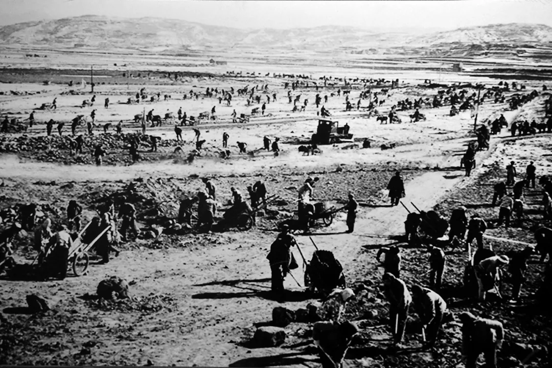 20世紀(jì)六七十年代,右玉縣群眾在荒山荒坡植樹(翻拍照片)。新華社發(fā)