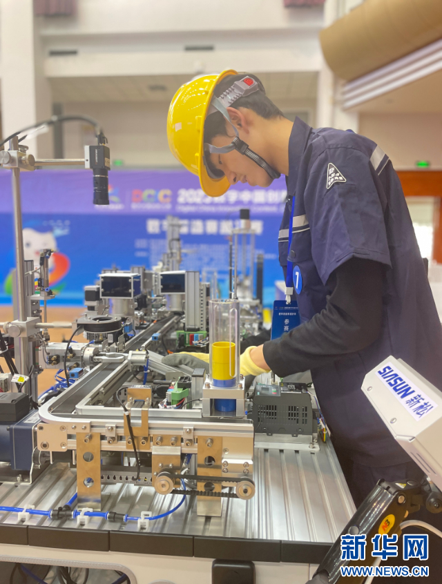 選手在決賽現(xiàn)場進(jìn)行管線固定。新華網(wǎng)發(fā)(主辦方供圖)