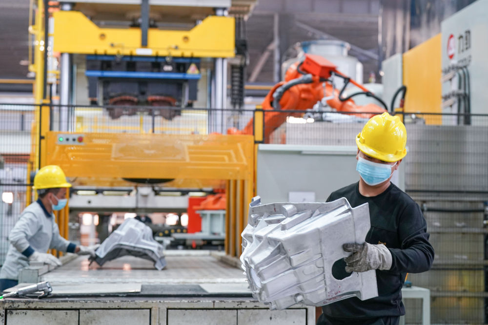 11月7日,在安徽省馬鞍山市含山縣輝晗精密機械有限公司,工人在壓鑄生產(chǎn)線上工作。新華社記者 劉軍喜