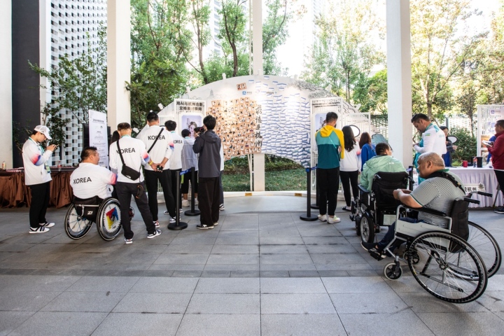 10月24日,記者走進杭州亞殘運村,近距離感受運動員們在村內(nèi)的生活。完善的住宿、餐飲及健身等設(shè)施外,記者發(fā)現(xiàn),亞殘運村還有個“最熱門”打卡地。該區(qū)域由螞蟻集團支持打造,運動員可以通過AI寫真、參觀“非視覺”攝影展、現(xiàn)場學(xué)中文等多種方式,帶走專屬“杭州記憶”。在現(xiàn)場的祝福墻,運動員寫下了600多張祝福卡,出現(xiàn)頻率最多的是“我愛杭州”“謝謝杭州”。