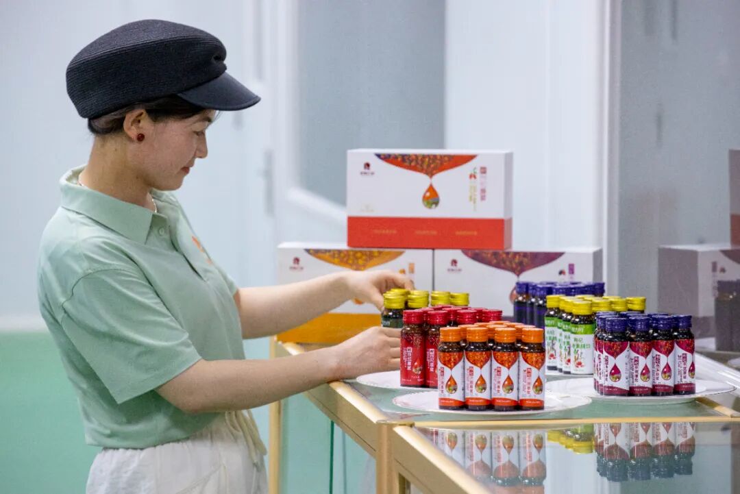 ▲6月20日,在寧夏同心縣河西鎮(zhèn)一家枸杞企業(yè),工作人員展示枸杞深加工產(chǎn)品。近年來(lái),河西鎮(zhèn)依托當(dāng)?shù)厝龡l引黃干渠灌溉網(wǎng)絡(luò),流轉(zhuǎn)土地發(fā)展枸杞種植,通過(guò)龍頭企業(yè)帶動(dòng)的方式發(fā)展枸杞深加工,產(chǎn)品深受國(guó)內(nèi)外消費(fèi)者喜愛(ài)。新華社記者 楊植森 攝