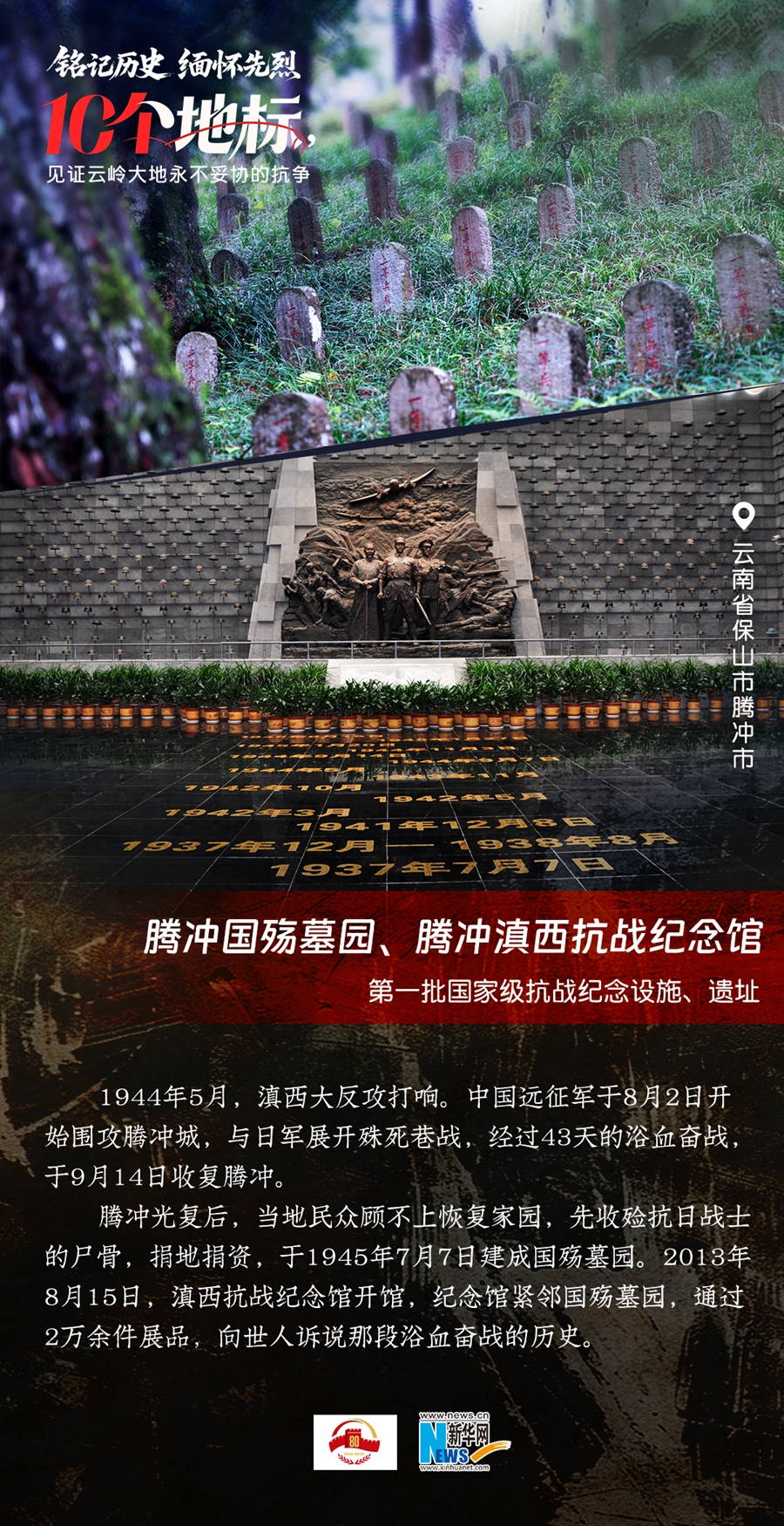 ??80年過去,曾經(jīng)的戰(zhàn)場硝煙雖散,但英氣永存。在國務院公布的前三批國家級抗戰(zhàn)紀念設施、遺址名錄中,云南省共有10個,分別為騰沖國殤墓園、騰沖滇西抗戰(zhàn)紀念館,龍陵抗日戰(zhàn)爭紀念館,國立西南聯(lián)合大學舊址,抗戰(zhàn)勝利紀念堂,松山戰(zhàn)役舊址,南洋華僑機工回國抗日紀念碑,怒江駝峰航線紀念館,施甸縣抗日江防遺跡群,滇緬公路惠通橋,滇西抗日戰(zhàn)爭紀念碑。它們承載著國人共同的歷史記憶與民族情感,也為我們學習和傳承抗戰(zhàn)精神提供了現(xiàn)實條件。