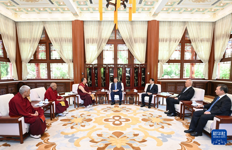 6月6日,中共中央總書記、國家主席、中央軍委主席習(xí)近平在北京中南海接受班禪額爾德尼·確吉杰布拜見。新華社記者 謝環(huán)馳 攝